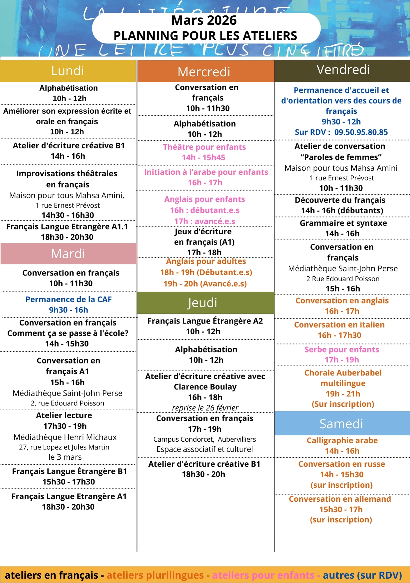 Autres langues : ateliers